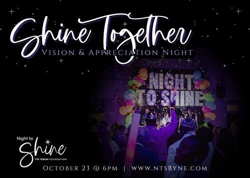 We are inviting our generous donors to join us on October 23 as we celebrate our partnership and the community collaboration that makes Night to Shine possible in our community. Existing Sponsors and potential sponsors are invited to meet VIP guests, share dinner together, and hear inspiring stories of our joint impact transforming lives in our community.